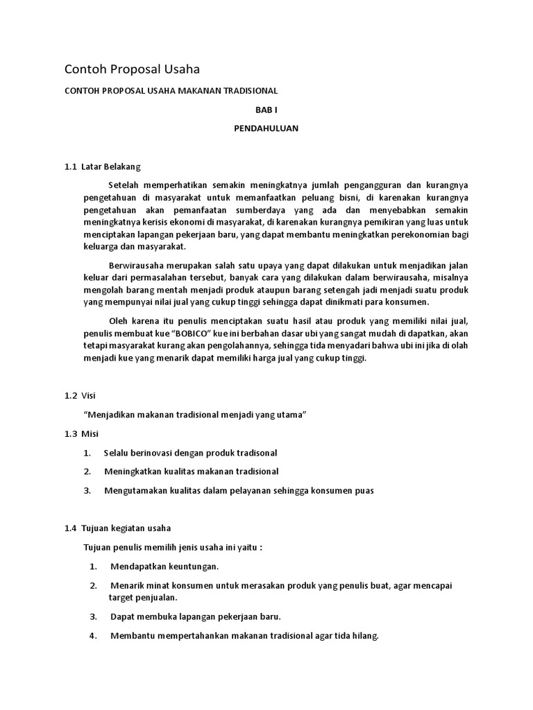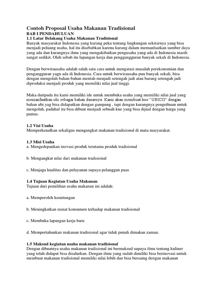 Doc Contoh Proposal Usaha Makanan Tradisional Wahyu Firmansyah Academia Edu