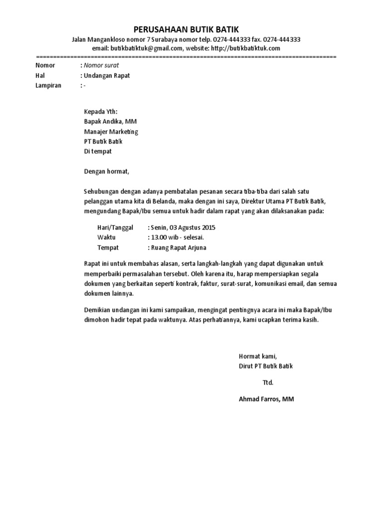 Contoh Surat Undangan Rapat Perusahaan